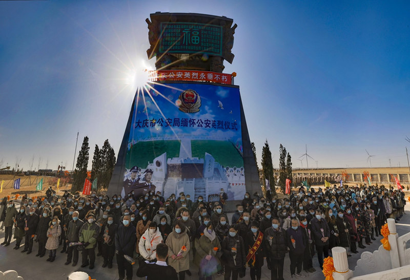 為了慶祝建黨一百周年,在清明節(jié)來臨之際,大慶市志愿服務聯(lián)合會發(fā)出祭掃大慶公安英烈倡議書第二天,讓區(qū)區(qū)委,區(qū)政府領導不忘初心,牢記使命,高度重視,精心安排。由區(qū)委常委,區(qū)委副書記張體忠牽頭負責,區(qū)民政部門組織全區(qū)各單位代表200多人今天上午集體統(tǒng)一乘車來到大慶公安英烈園(大慶天堂墓園內)為保衛(wèi)大慶經濟發(fā)展,社會和諧穩(wěn)定,人民安居樂業(yè)而英勇犧牲的大慶市公安英烈敬獻鮮花,默哀致敬,鞠躬掃墓。隨后又給安葬在天堂墓園因公犧牲的公安民警祭奠掃墓。