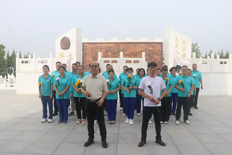 (2)手持鮮花共同祭拜大慶公安英烈。