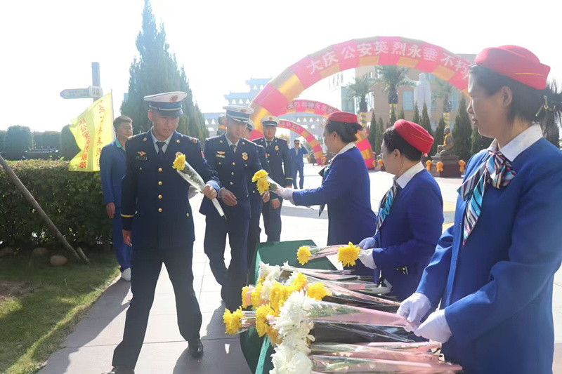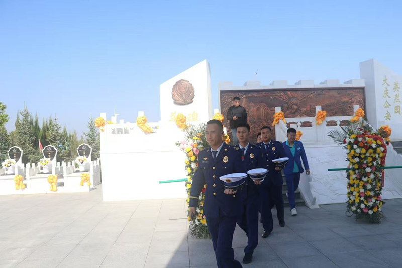 今天是烈士紀念日,讓胡路區消防大隊來天堂墓園執行保衛大慶公安局祭祀公安英烈活動。
